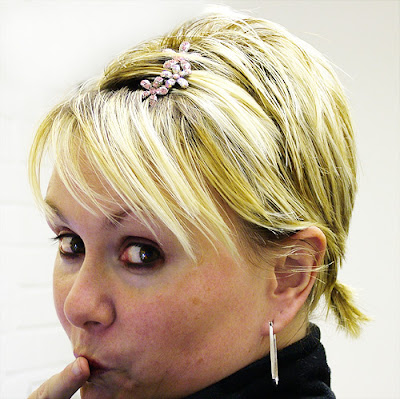 -she put a clip in her hair and tied a very little ponytail in the back [its a wierd angle, but you can kinda see it.] it's very cuteee.